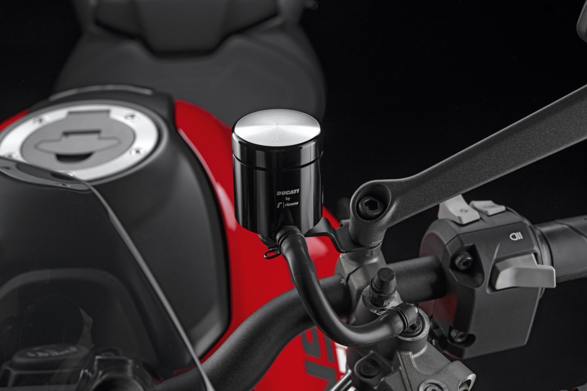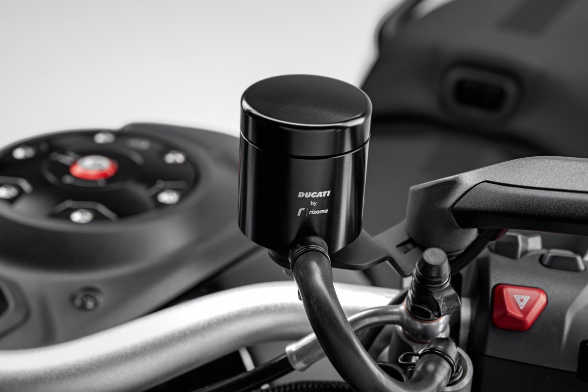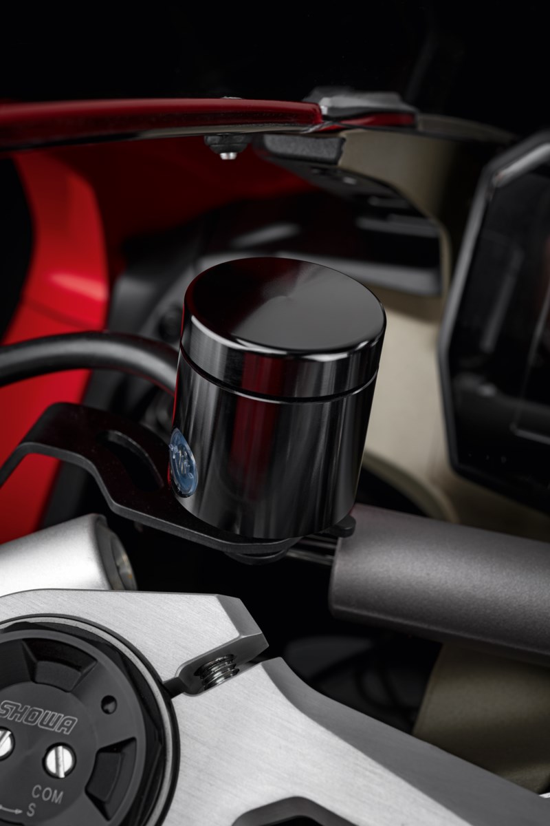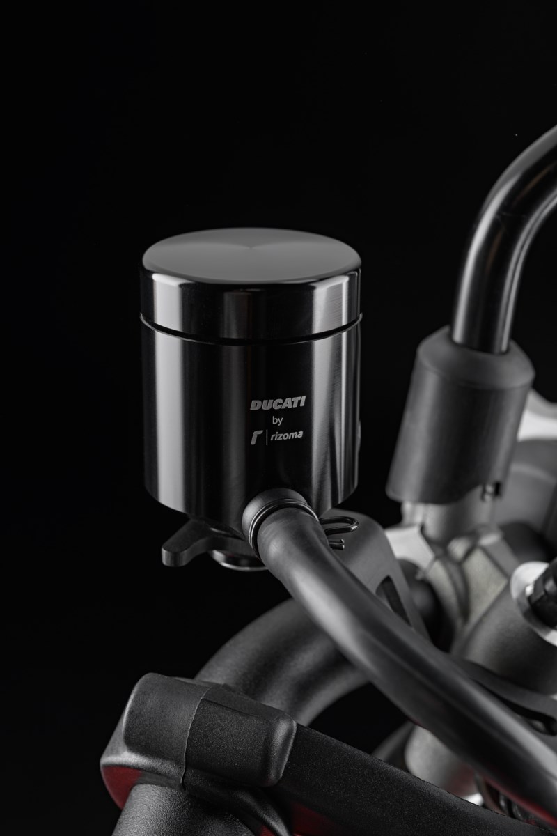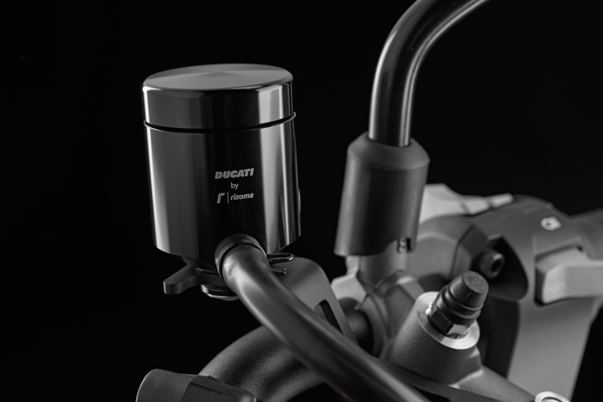 Der Kupplungsflüssigkeitsbehälter (96180561AX) ist ein hochwertiges Zubehörteil, das den sportlichen Charakter von Ducati unterstreicht. Er wurde vollständig aus Aluminium gefertigt und besticht durch seine hochwertige Eloxierung sowie die präzise CNC-Bearbeitung, die für Langlebigkeit und ein dauerhaft ansprechendes Aussehen sorgen.
