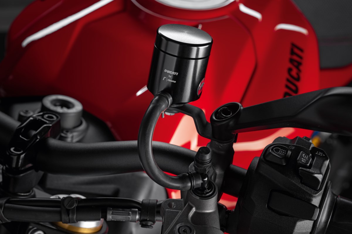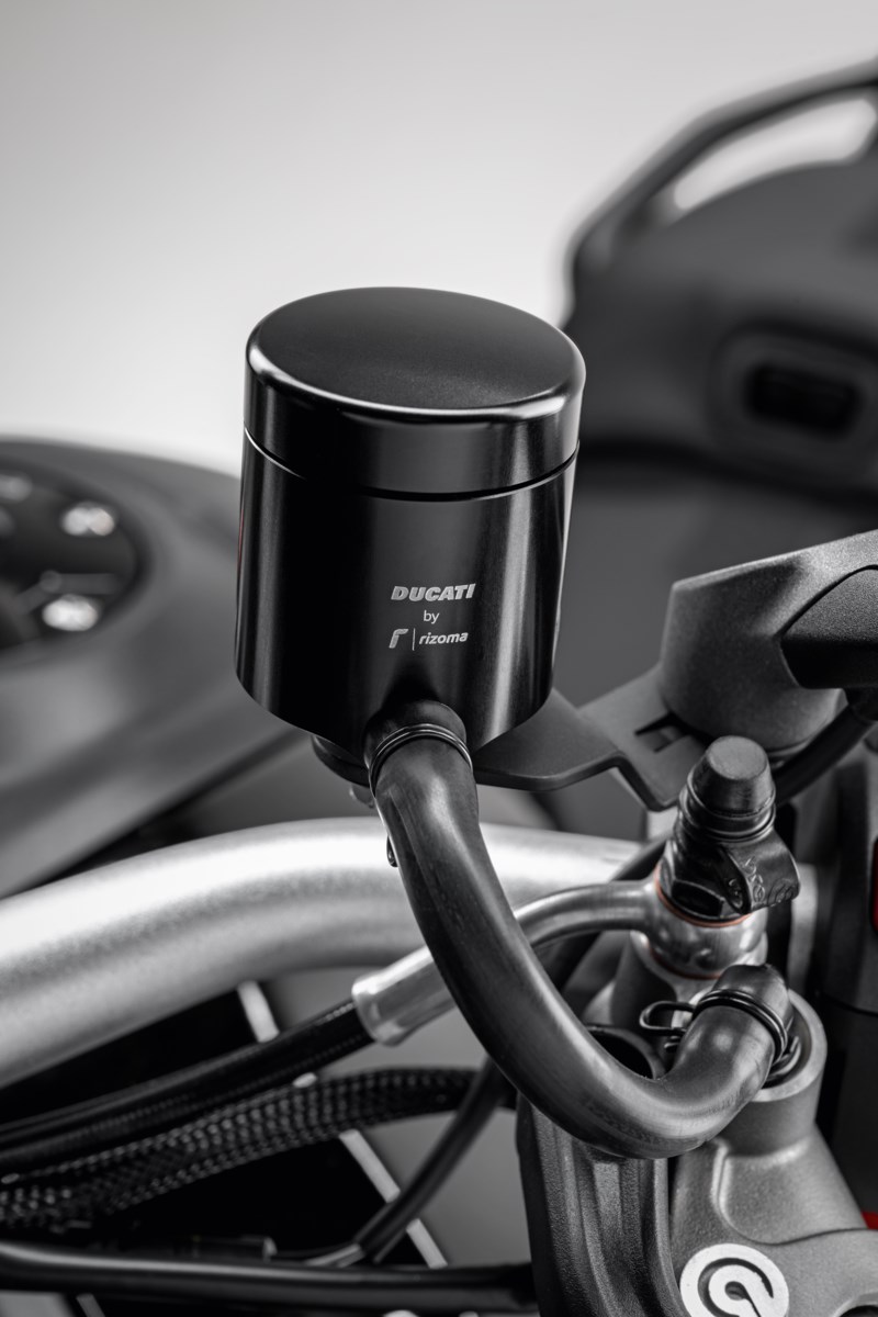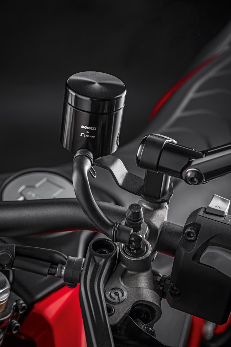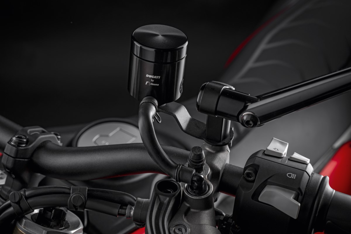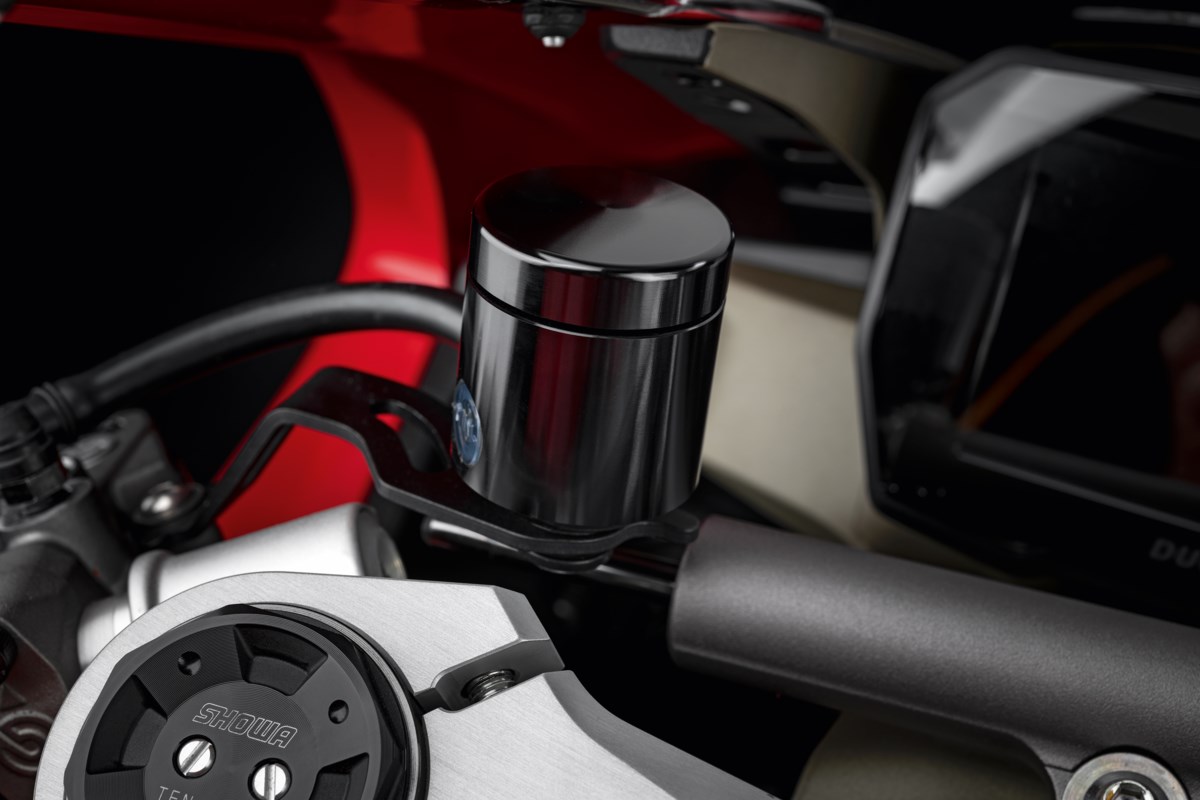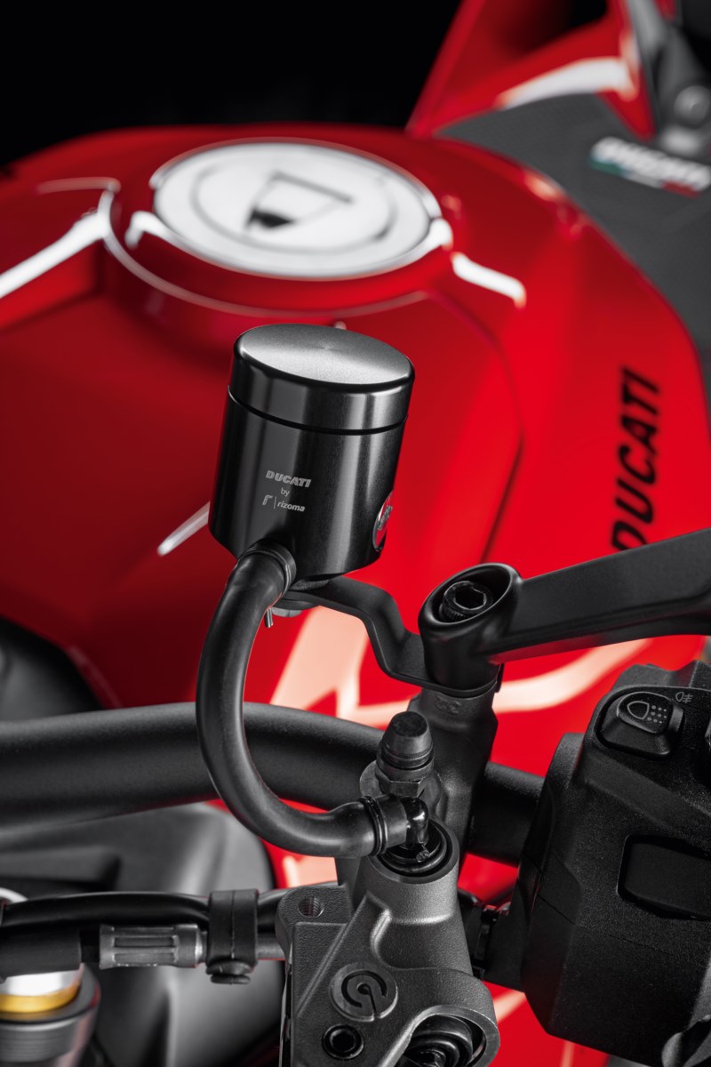 Der Kupplungsflüssigkeitsbehälter (96180561AX) ist ein hochwertiges Zubehörteil, das den sportlichen Charakter von Ducati unterstreicht. Er wurde vollständig aus Aluminium gefertigt und besticht durch seine hochwertige Eloxierung sowie die präzise CNC-Bearbeitung, die für Langlebigkeit und ein dauerhaft ansprechendes Aussehen sorgen.