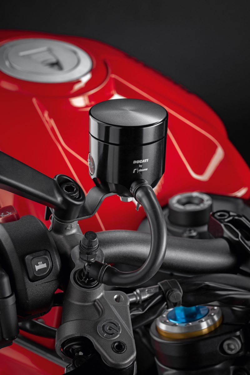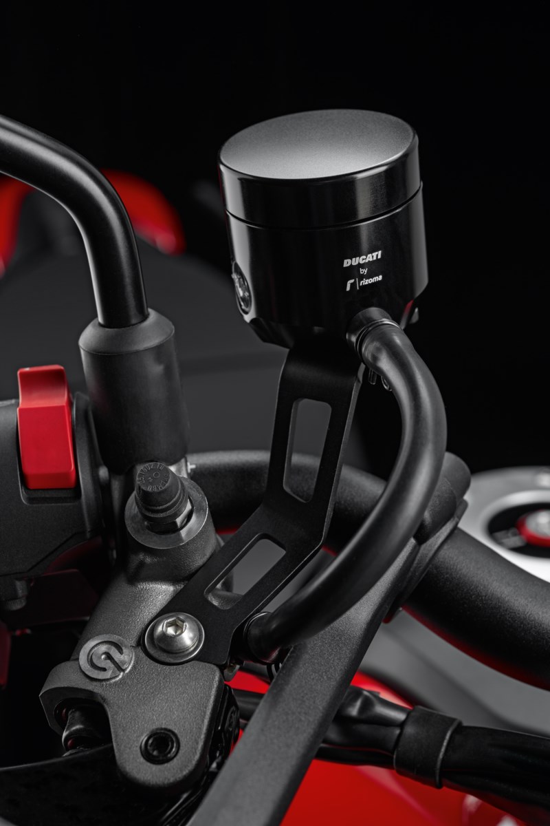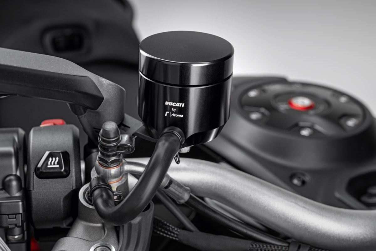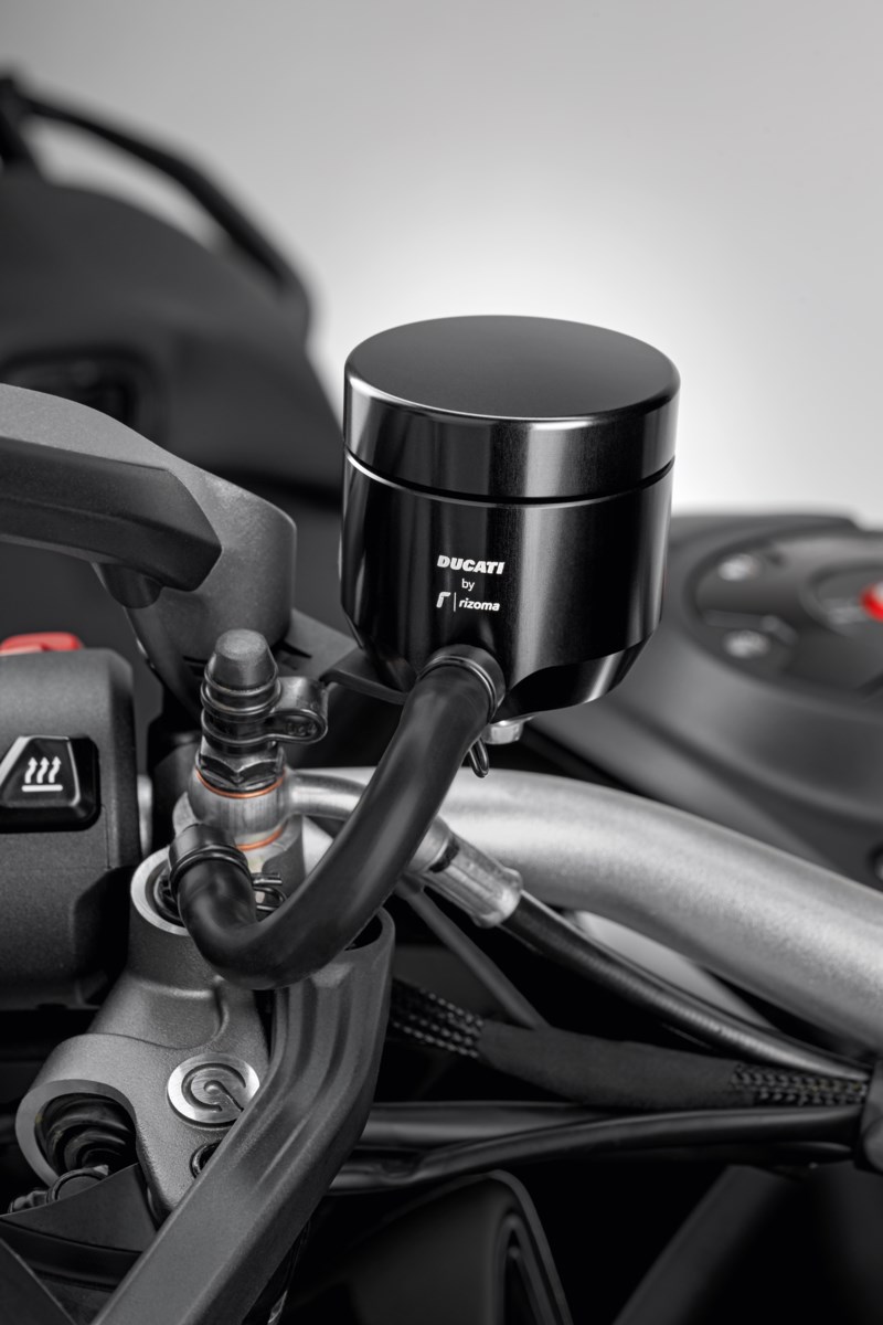 Der Bremsflüssigkeitsbehälter (96180571AX) ist ein hochwertiges Zubehörteil, das den sportlichen Charakter von Ducati-Motorrädern unterstreicht. Er wird vollständig aus Aluminium gefertigt und zeichnet sich durch eine präzise CNC-Bearbeitung aus, die für Langlebigkeit und eine gleichbleibende Optik sorgt.