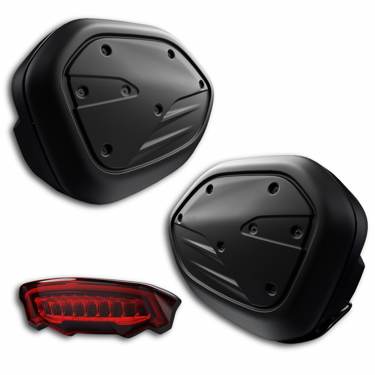 Im Lieferumfang ist ein neues Rücklicht enthalten, das das OEM-Rücklicht ersetzt, um die Zulassungsbedingungen zu erfüllen und die Sichtbarkeit sowie Sicherheit zu verbessern. Zusätzlich sind wasserdichte Überzüge im Set enthalten, die den Schutz bei Regen gewährleisten. Die Koffer werden ohne Cover verkauft, können jedoch mit separat erhältlichen, farblich passenden Covers kombiniert werden.