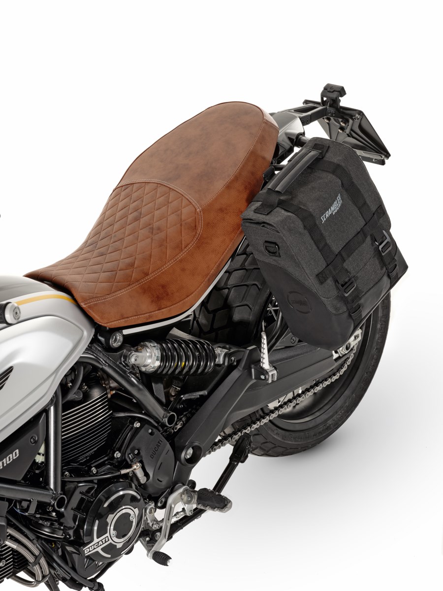 Das Design orientiert sich am Scrambler-Stil und ist speziell für Motorräder mit obenliegendem Auspuff konzipiert. Die maximale Belastung beträgt 3 kg, und die zulässige Höchstgeschwindigkeit mit montiertem Koffer liegt bei 130 km/h.