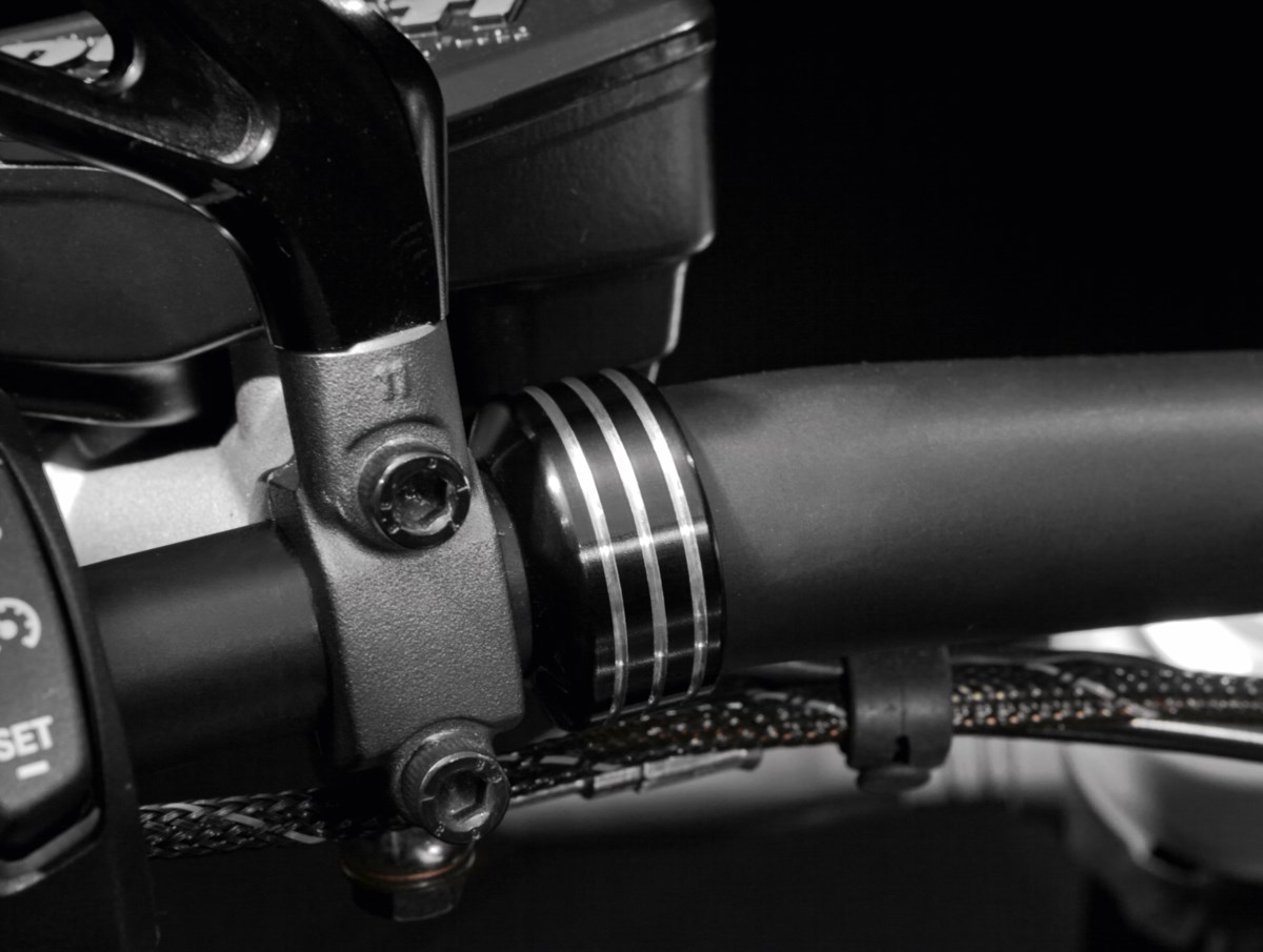 Die Ästhetischen Lenkerbuchsen (97380581A) wurden in Zusammenarbeit mit Roland Sands Design entwickelt und zeichnen sich durch ihr spezielles Design aus, das kleine Details hervorhebt, die den Unterschied machen. Sie dienen als optisches Upgrade für den Lenkerbereich und setzen stilistische Akzente.