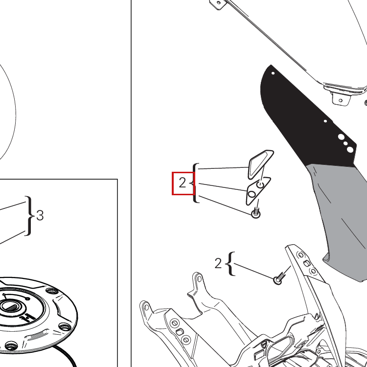 Die Abdeckung für Spiegelbohrungen (97381151AA) dient zum Verschließen der Bohrungen in der Cockpitverkleidung, die nach dem Entfernen der Rückspiegel zurückbleiben. Dieses Teil ermöglicht den Einsatz des Motorrads auf der Rennstrecke, indem es eine saubere und sichere Oberfläche schafft.