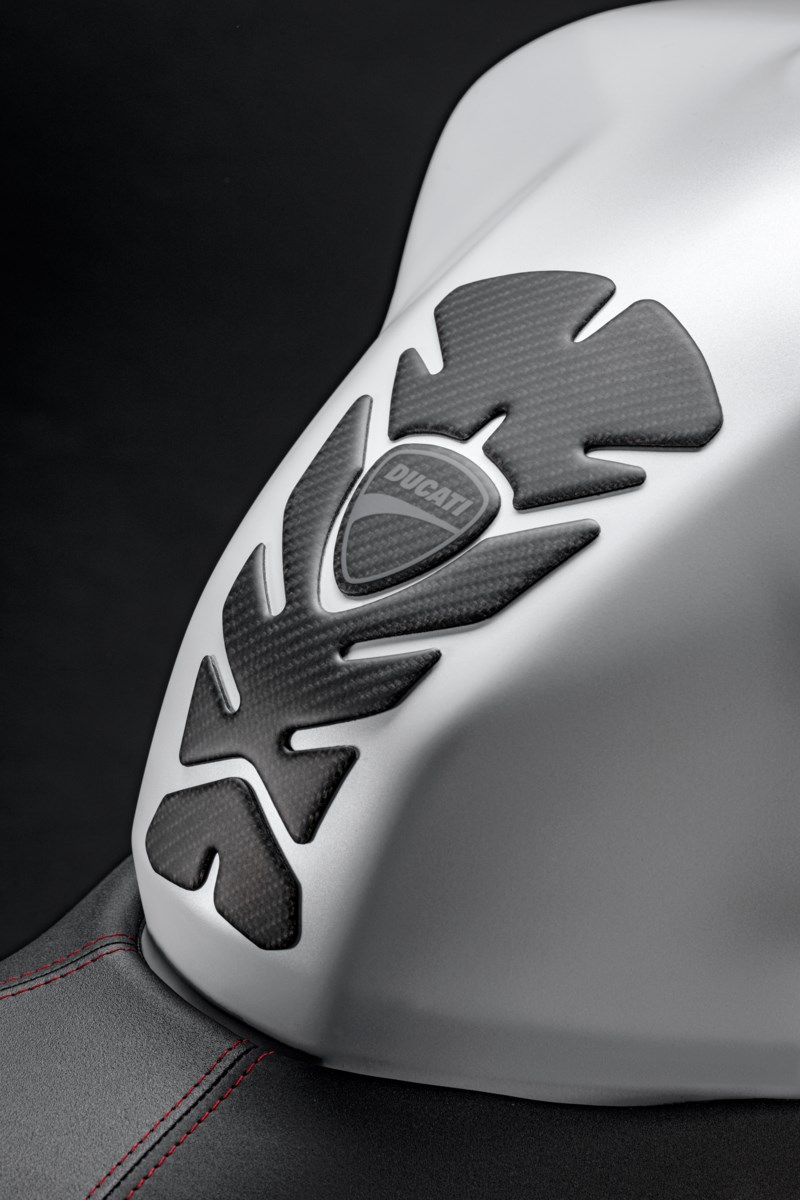 Der Aufklebbarer Tankschutz aus Kohlefaser (97480151A) ist ein Schutzaufkleber für den Tank, der mit einem Kern aus Glasfaser gefertigt ist. Er schützt die Tankoberfläche vor Kratzern und Abnutzung und passt sich dabei den Formen des Tanks an.