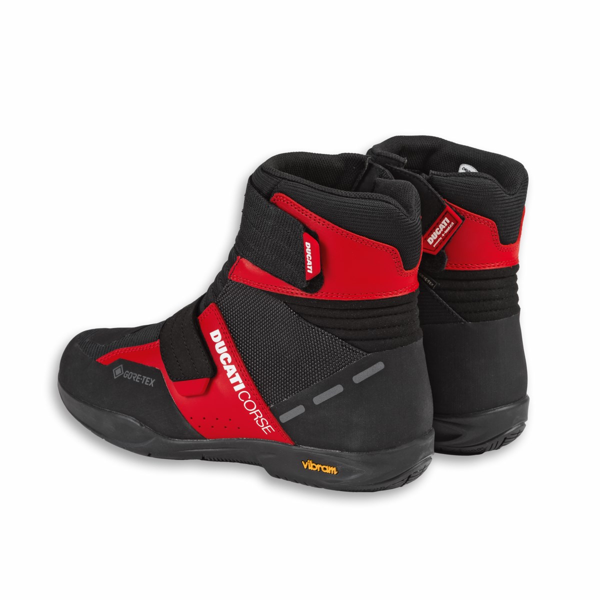 Die Ducati Corse City C3 Stiefel (9810903XX) sind niedrige, vom Rennsport inspirierte Motorradstiefel, die speziell für den Touring- und urbanen Einsatz entwickelt wurden. Sie bestehen aus Oberleder aus Leder und Funktionsgewebe, kombiniert mit einer atmungsaktiven und wasserdichten Gore-Tex®-Membran, die für ein angenehmes Fußklima sorgt.