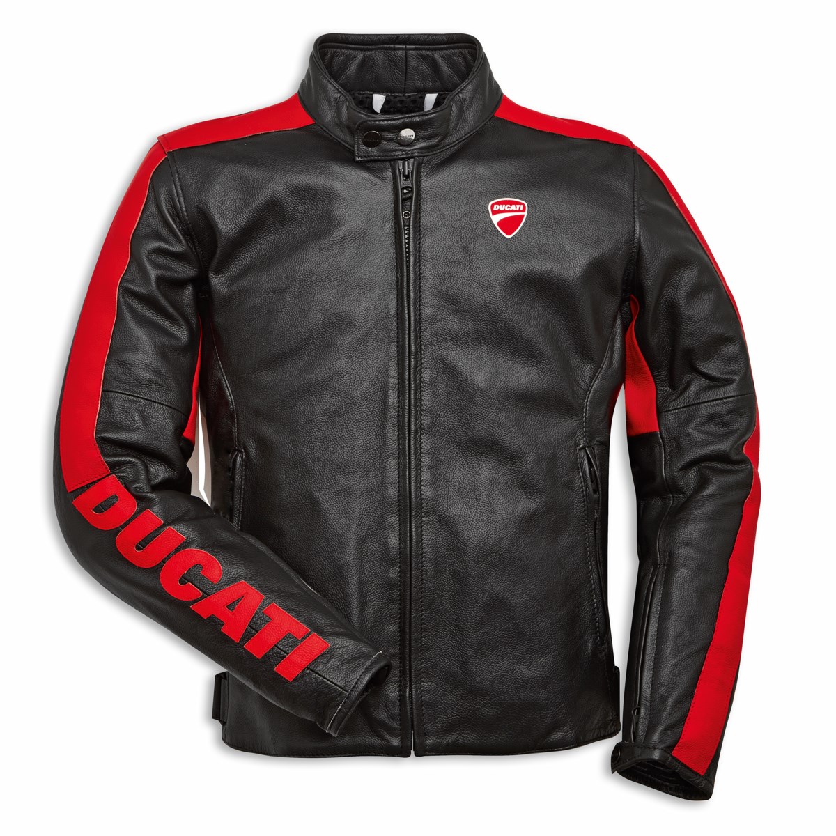 Die Ducati-typischen Designelemente zeigen sich in einem Patch auf der Brust, lasergeschnittenen Schriftzügen sowie Steppnähten auf der Rückseite und am rechten Arm in kräftigem Rot. Die Jacke ist für die Verwendung mit dem Company 5 Pro Armor Rückenprotektor in verschiedenen Größen vorbereitet und bietet so eine Kombination aus Schutz und urbanem Stil.