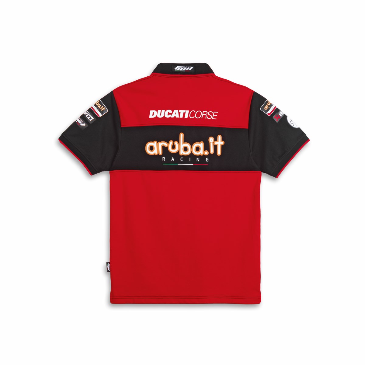 Das SBK Team Replica 26 Polo (98780475X) ist ein kurzärmeliges Herrenpolo aus der Ducati Corse Kollektion. Es besteht aus einem Materialmix von 60% Baumwolle, 30% Polyester und 10% Elasthan, der für eine angenehme Passform und Bewegungsfreiheit sorgt. Die Kombination der Stoffe bietet zudem eine gute Strapazierfähigkeit und Komfort im Alltag.