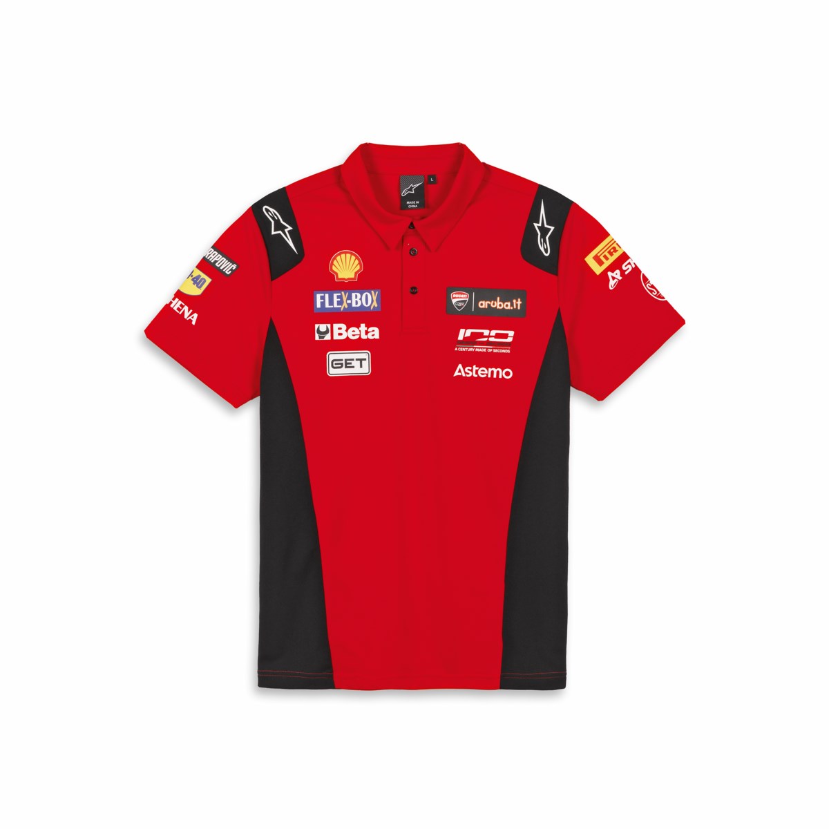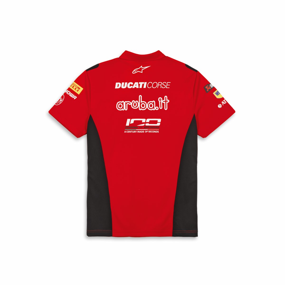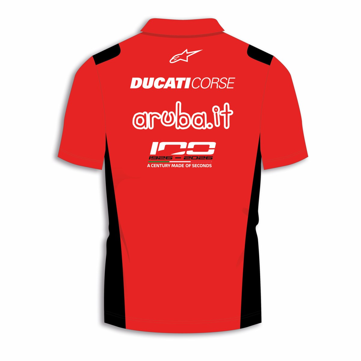 Das Shirt ist für den Einsatz in der Saison 2026 vorgesehen und eignet sich als legere Bekleidung mit Bezug zur Ducati Corse Marke.