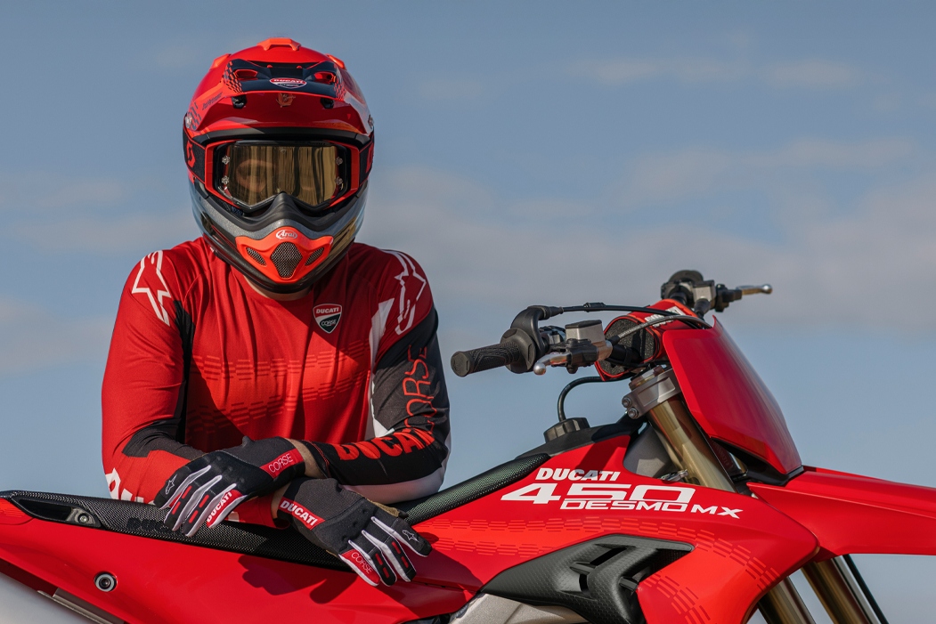 Für Wartung, Verschleiß und die passende Ausrüstung gilt: Auf ducati-world24.com finden Ducatisti Ducati Ersatzteile, Ducati Originalteile und Ducati Zubehör ebenso wie Ducati Motorradteile und Ducati Ersatzteile online - inklusive ausgewähltem Ducati Performance Zubehör und Ducati Performance Parts, sowie Ducati Motorradbekleidung und Ducati Apparel. Wir sind offizieller Partner Ducati Stuttgart sowie Vertragspartner Ducati für den Verkauf von Ersatzteilen, Zubehör und Ducati Motorradbekleidung. So lässt sich die Desmo 450 MX mit passenden Teilen, Schutzkomponenten und professioneller Ausrüstung zuverlässig auf dem Niveau halten, das Motocross verlangt.