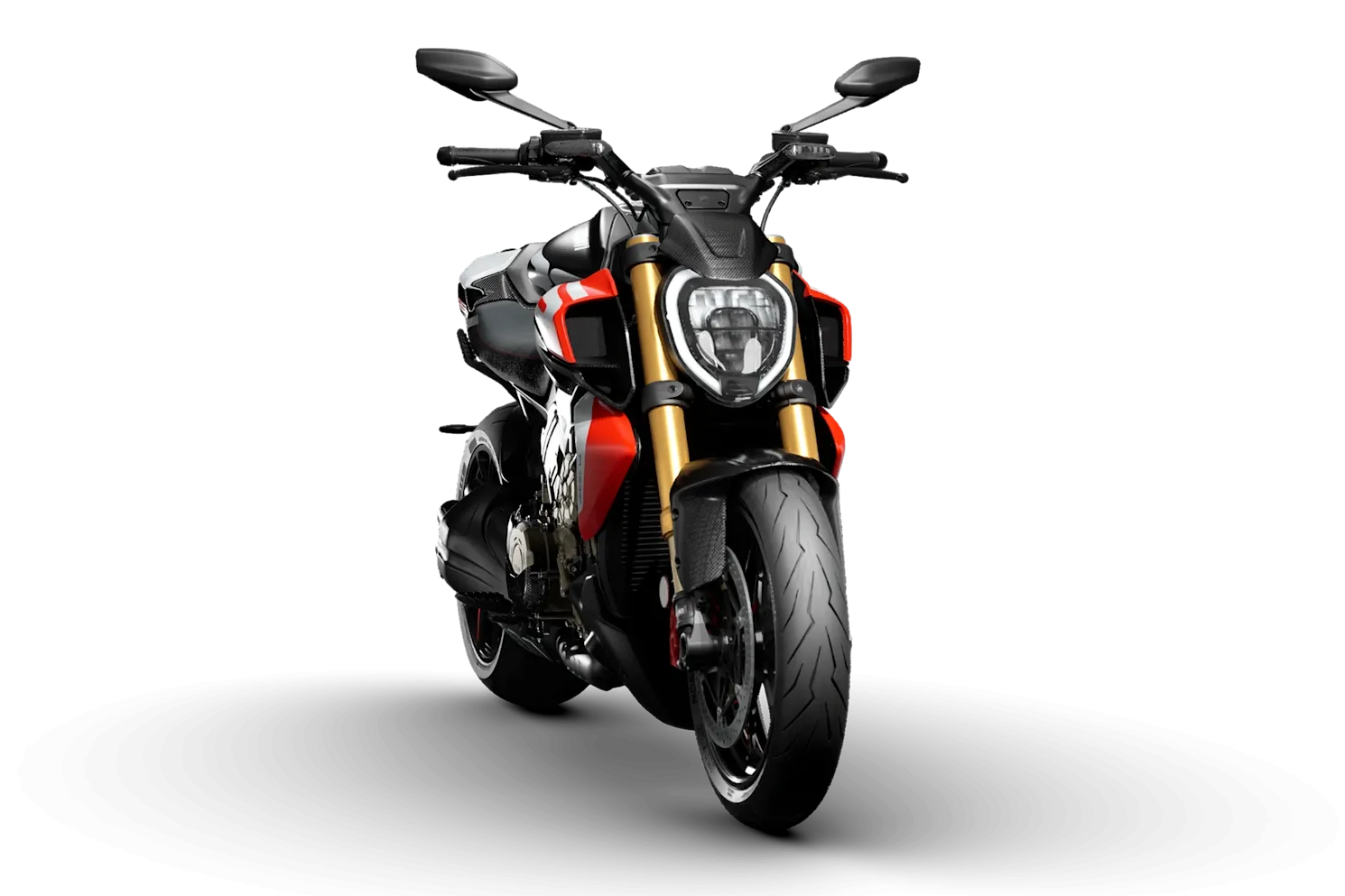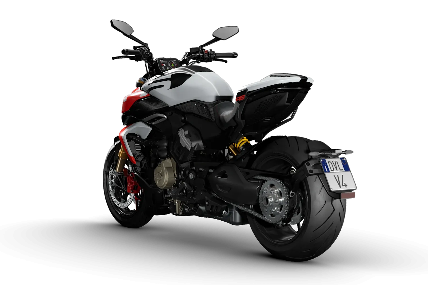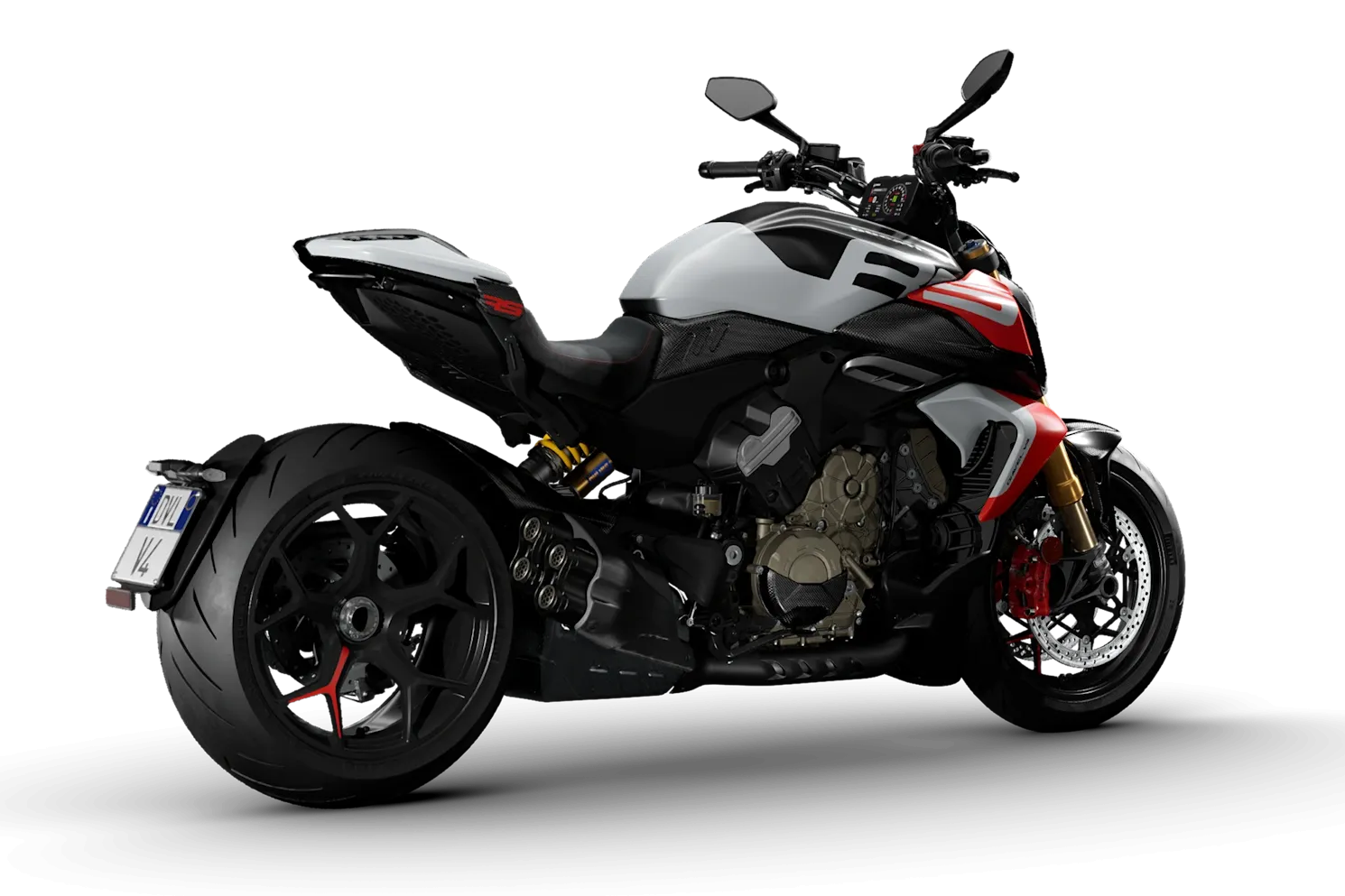 Die Ducati Diavel V4 RS ist pure Leistung mit mutiger Seele: Desmosedici Stradale, gegenläufige Kurbelwelle, Öhlins-Fahrwerk, Panigale-nahe Bremsen, Carbon-Leichtbau und eine Elektronik, die Race-Logik auf die Straße bringt. Dazu kommt die nummerierte Edition, die RS-Livery und die kompromisslose Einzelsitz-Ästhetik - eine Diavel für die Schnellsten und die Entschlossensten.