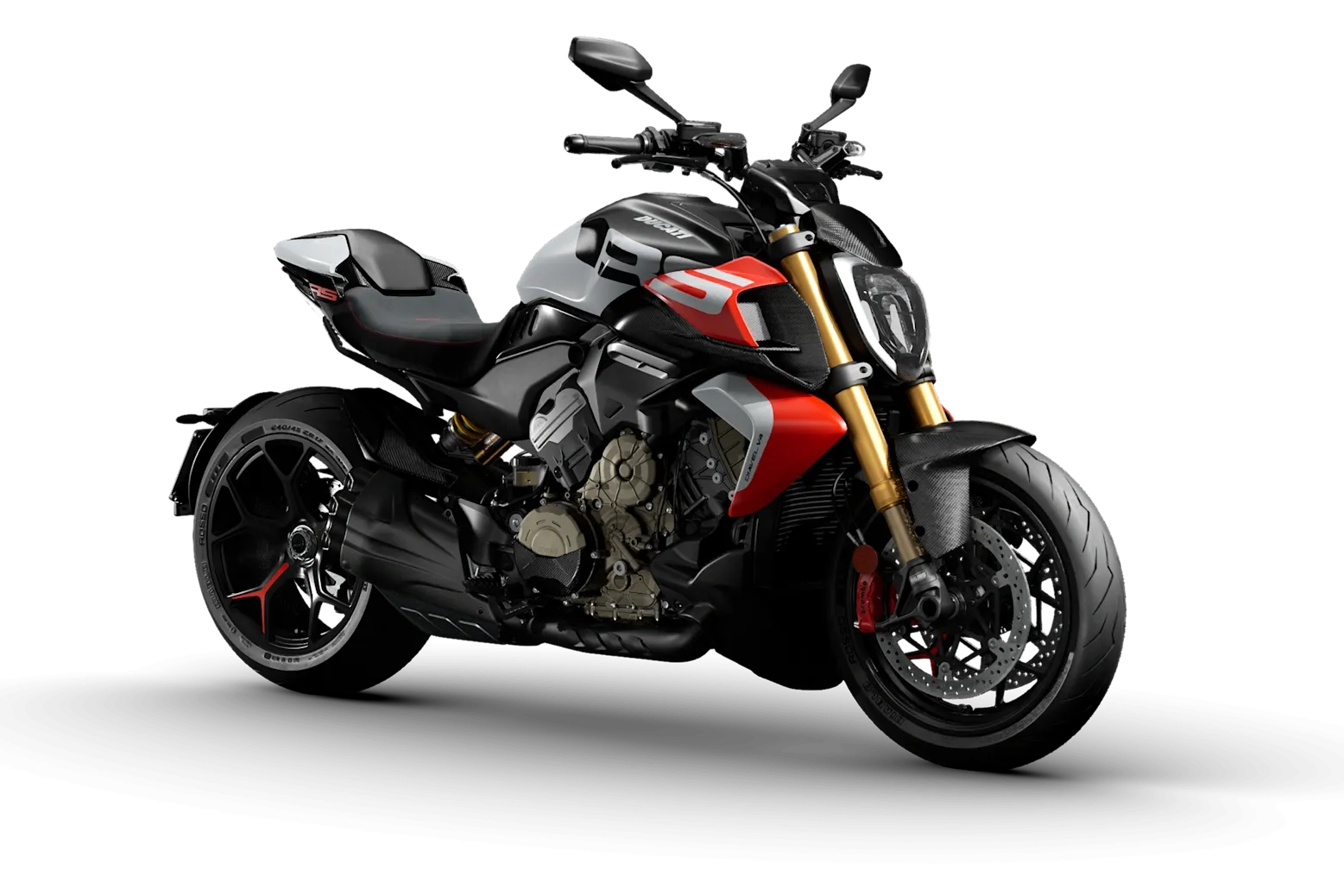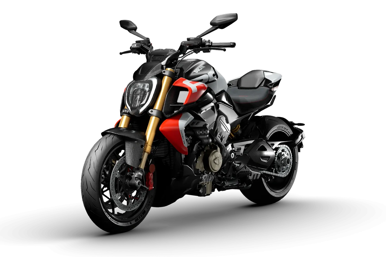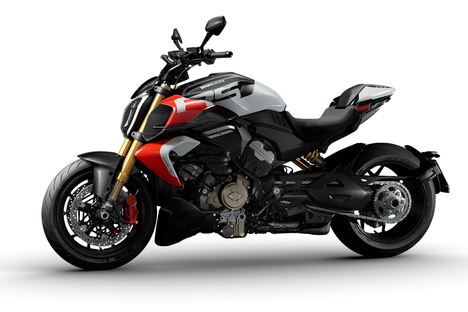 Die Ducati Diavel V4 RS ist pure Leistung mit mutiger Seele: Desmosedici Stradale, gegenläufige Kurbelwelle, Öhlins-Fahrwerk, Panigale-nahe Bremsen, Carbon-Leichtbau und eine Elektronik, die Race-Logik auf die Straße bringt. Dazu kommt die nummerierte Edition, die RS-Livery und die kompromisslose Einzelsitz-Ästhetik - eine Diavel für die Schnellsten und die Entschlossensten.