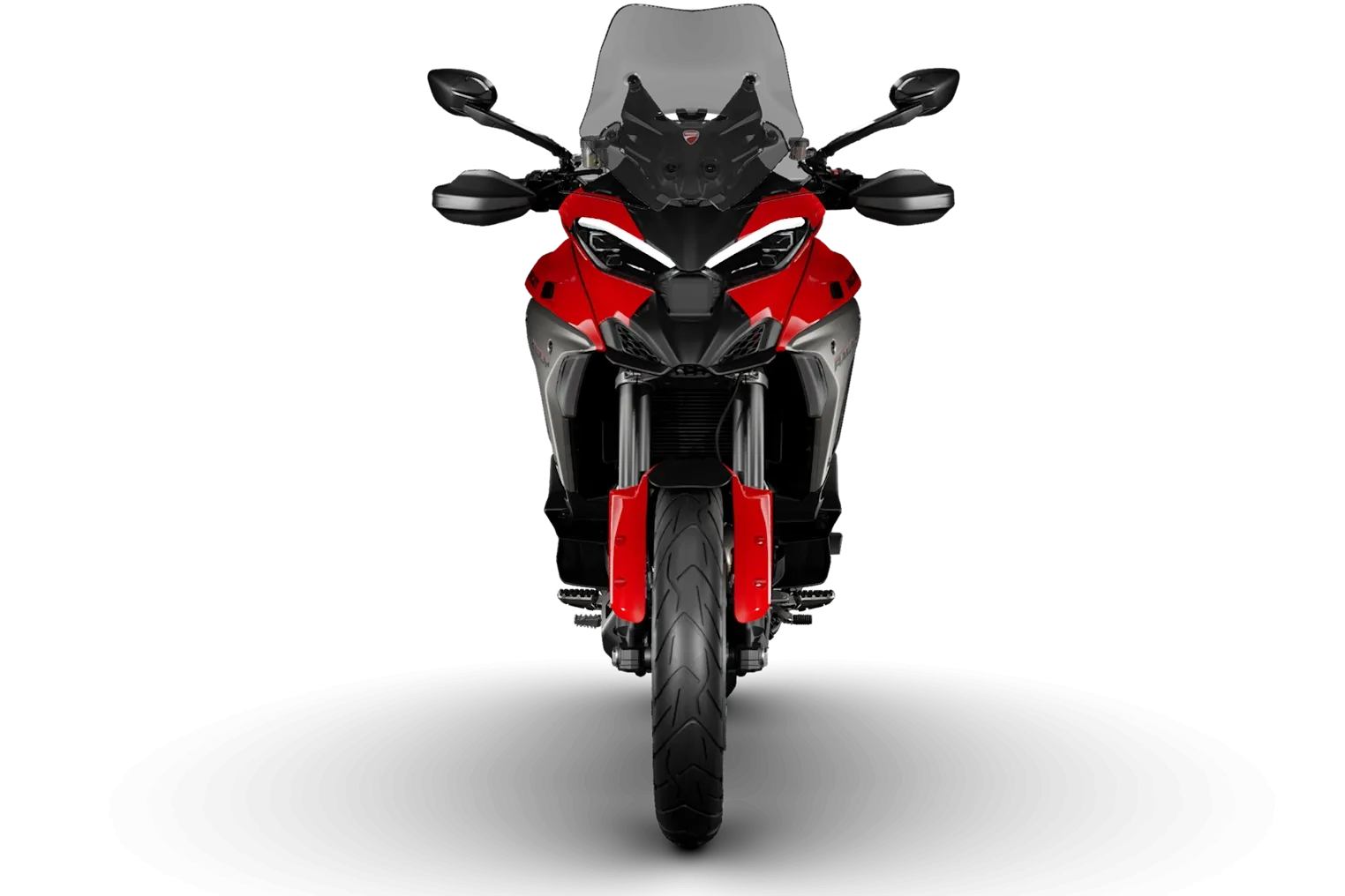Die Aerodynamik profitiert von Ducati-Know-how aus MotoGP: Deflektoren erhöhen den Schutz, insbesondere für den Beifahrer, und ziehen den Luftstrom weiter nach hinten als bei Multistrada V4 und V4 S. Dazu passt die größere Scheibe: 40 mm höher und 20 mm breiter, um Schutz und Ruhe im Oberkörperbereich zu erhöhen.