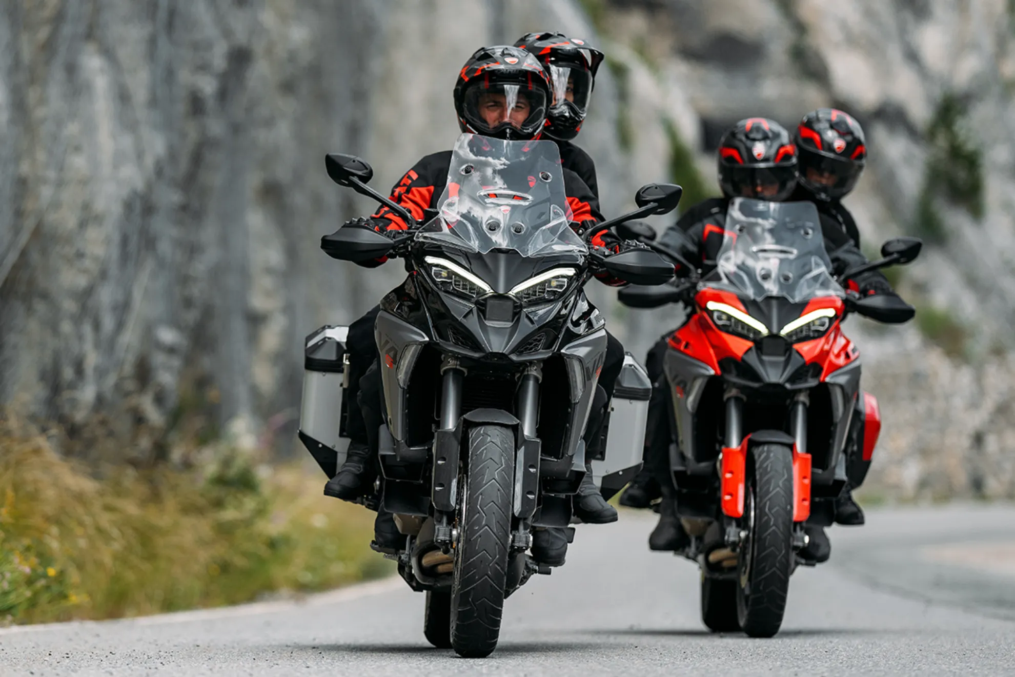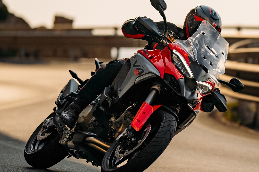 Die V4 S richtet sich an Fahrer, die die Multistrada als Premium-Reisegerät nutzen wollen - mit maximaler Anpassungsfähigkeit. Wer häufig zwischen Stadt, Autobahn, Passstraße und schlechteren Nebenstrecken wechselt, profitiert vom elektronischen Skyhook-Fahrwerk, der automatischen Absenkung im niedrigen Geschwindigkeitsbereich und der höheren Bedien- und Anzeigequalität des 6,5"-TFT mit integrierter Navigation. Gleichzeitig bleibt sie Ducati: sportlich, präzise, leistungsstark - nur mit deutlich mehr „Gelassenheit“ im Hintergrund.
