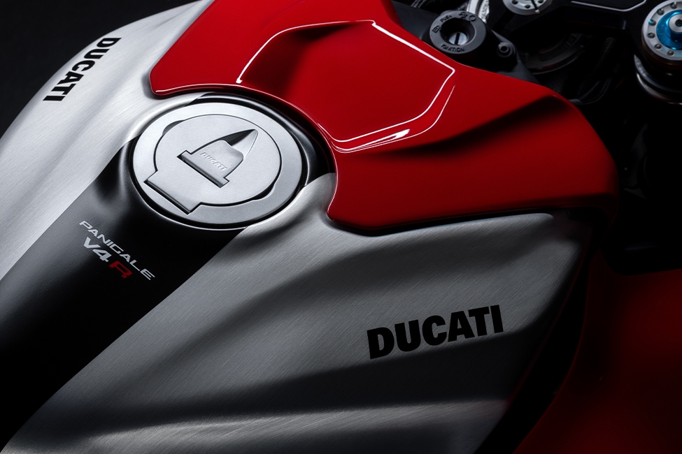 Schon im Design wirkt sie härter und technischer als eine Panigale V4: kompakter, schärfer, durch Carbon-Komponenten veredelt und in einer Race-inspirierten Lackierung, bei der Ducati Red den historischen Bezug zu den WorldSBK-“R”-Bikes sichtbar macht. Der Tank aus sichtbarem, gebürstetem Aluminium verstärkt diese Authentizität: weniger Show, mehr Werkstoff - genau passend zu einer Maschine, deren Daseinszweck aus technischer Substanz besteht. Gleichzeitig wird die Euro-5+-Homologation nicht als Einschränkung, sondern als Entwicklungsdisziplin genutzt: neue Ansaugkanäle, repositionierte Einspritzdüsen und angepasste Nockenprofile senken Roh-Emissionen, ohne die Performance zu opfern.