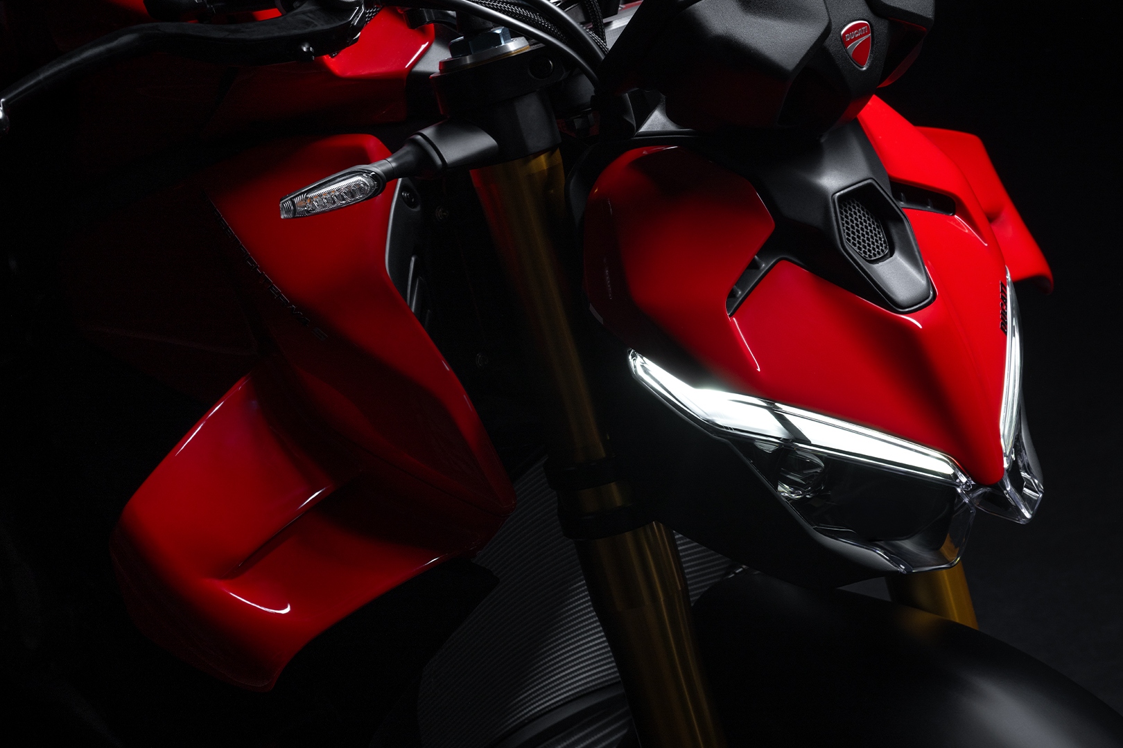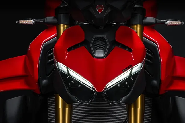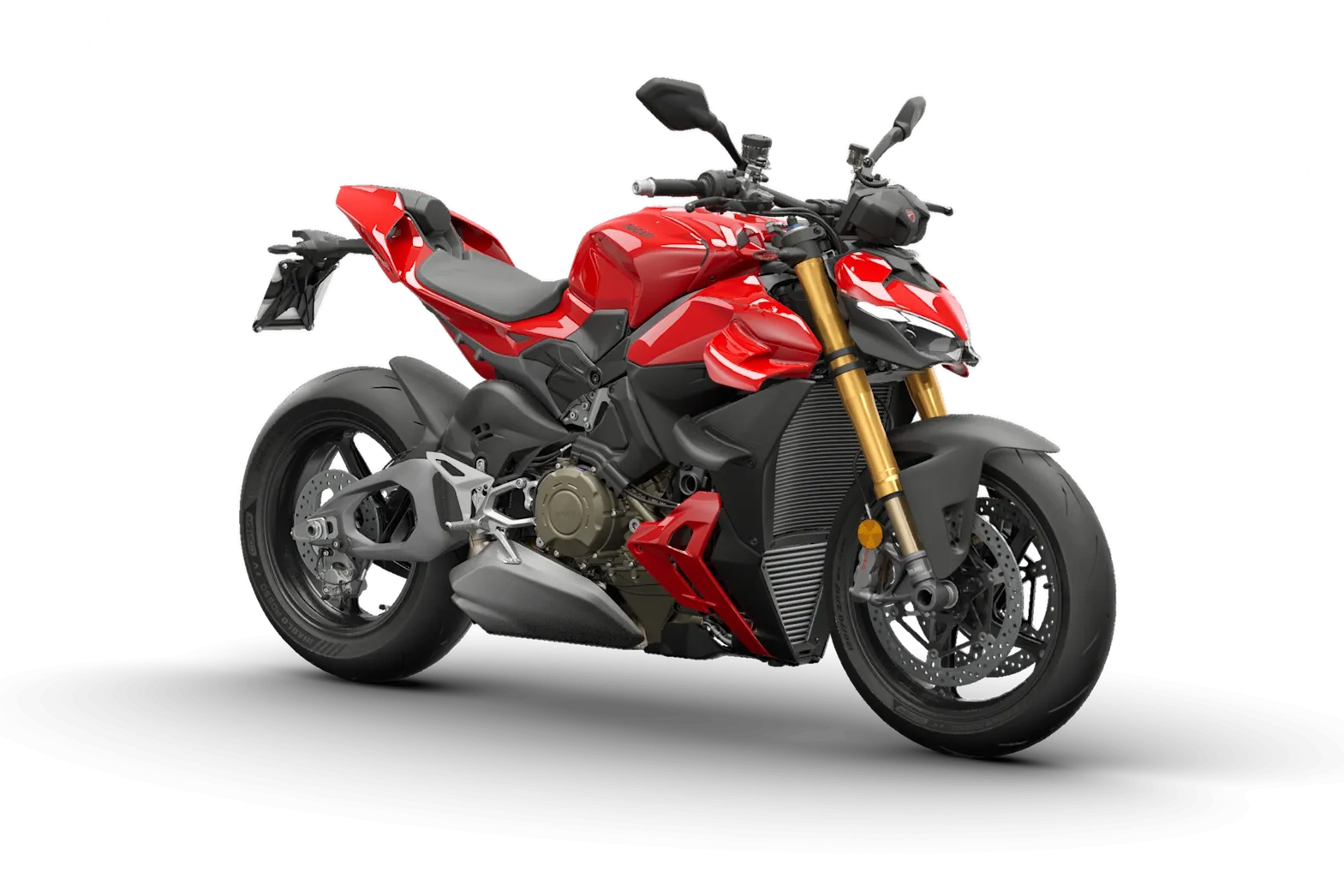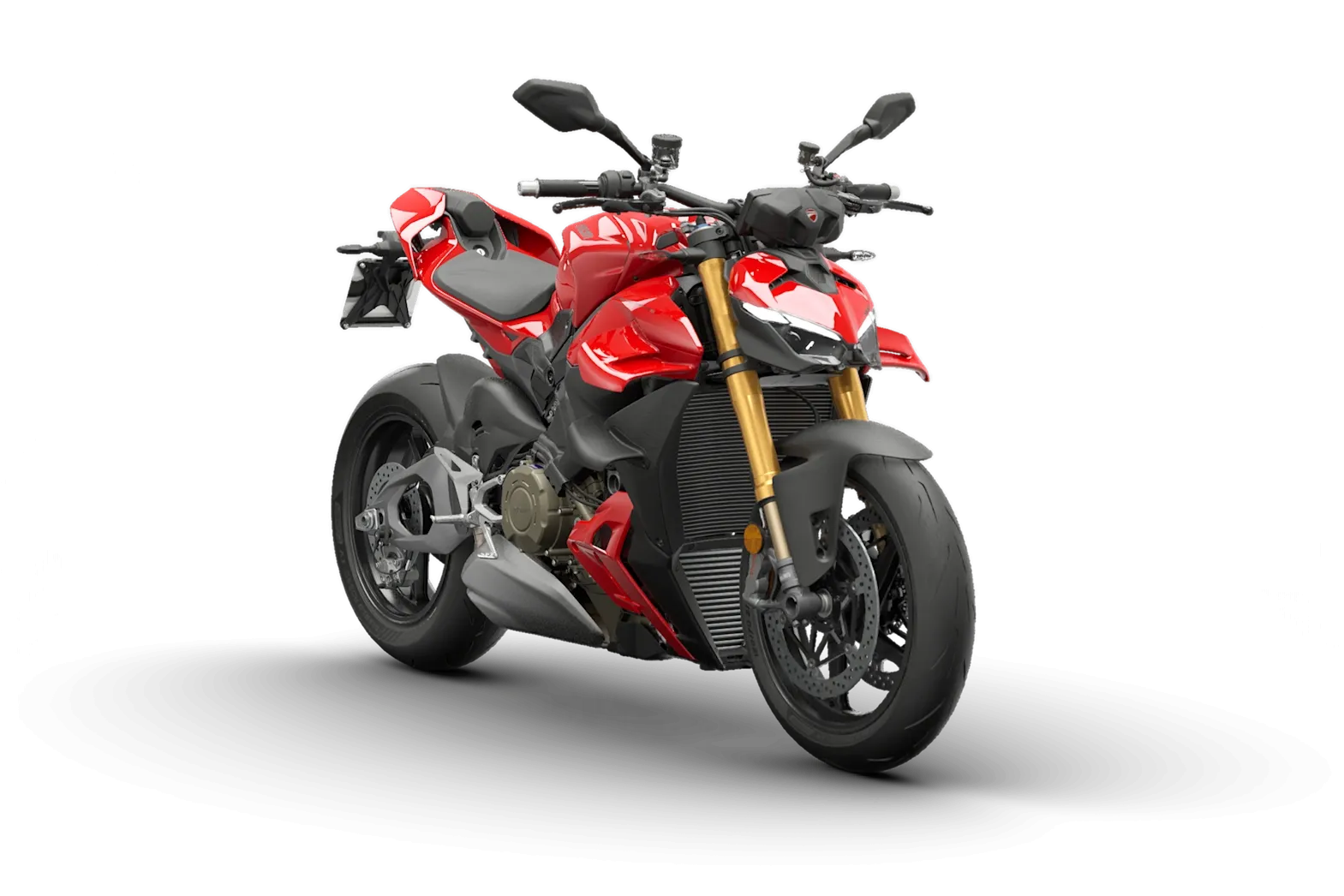 Die Ducati Streetfighter V4 S ist die Premium-Version der 214-hp-Fight-Formel: gleicher Desmosedici Stradale, aber mit Öhlins Smart EC 3.0 (event-based) über DES 3.0, Öhlins-Lenkungsdämpfer, Schmiederädern und Lithium-Ionen-Batterie. 189 kg (ohne Kraftstoff) und ein Fahrwerks-Setup, das Komfort und Track-Support besser zusammenbringt. Mehr Kontrolle, mehr Konstanz - bei unverändert kompromisslosem Streetfighter-Charakter.