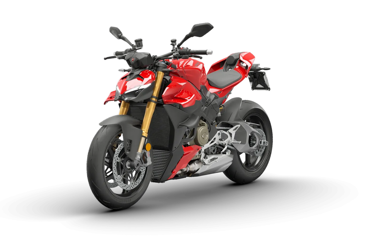 Die Ducati Streetfighter V4 S ist die Fight Formula in ihrer feinsten, premiumorientierten Ausbaustufe: derselbe 1.103-cm³-Desmosedici-Stradale mit 214 hp - aber mit dem Hardwarepaket, das aus brutaler Leistung ein noch präziseres, noch stabileres und noch leichter zu nutzendes Gesamtpaket macht. Wo die Streetfighter V4 Standard bereits Superbike-Technik ohne Verkleidung liefert, setzt die V4 S genau dort nach, wo Zeit, Vertrauen und Konstanz entstehen: semiaktives Öhlins-Fahrwerk mit Smart EC 3.0 (event-based), Öhlins-Lenkungsdämpfer, Schmiederäder und Lithium-Ionen-Batterie. Dazu kommt ein Gewichtsvorteil: 189 kg (ohne Kraftstoff) statt 191 kg bei der V4.