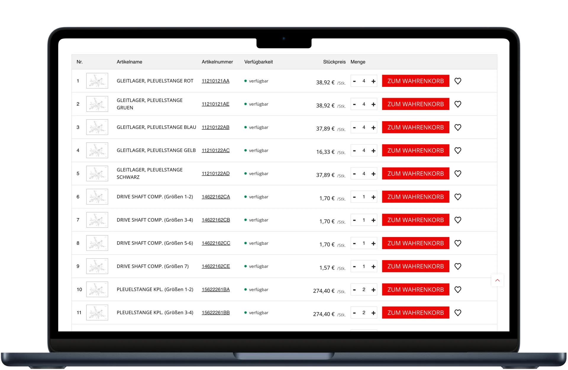 Um ein Ersatzteil zu kaufen, legen Sie es einfach in den Warenkorb und wählen Sie die benötigte Menge aus.