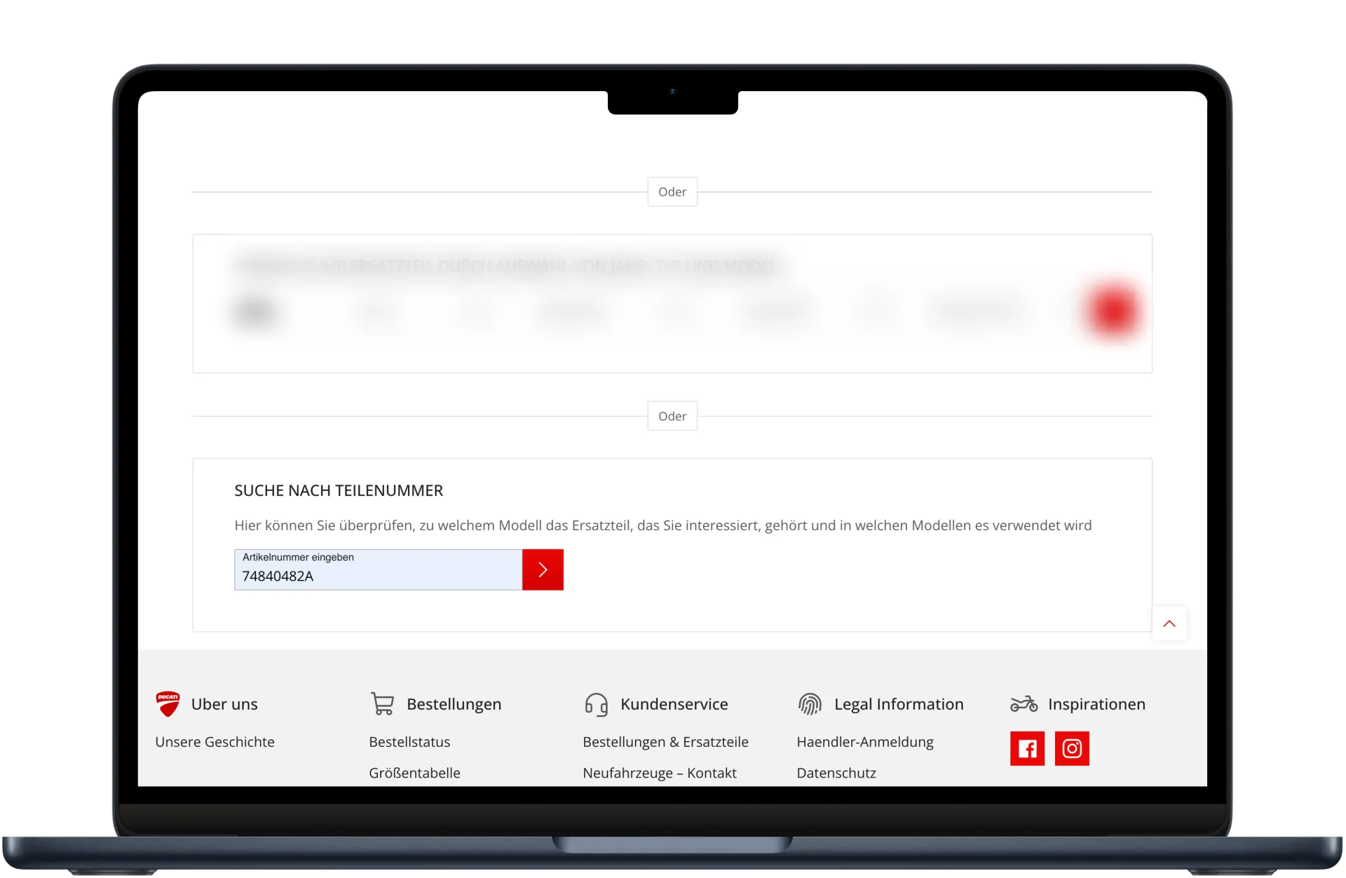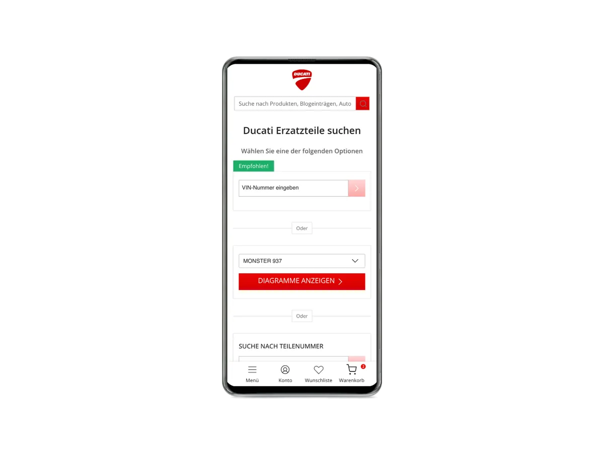 Diese Suchmethode ist ideal, wenn Sie die genaue Teilenummer bereits kennen. Wo finden Sie diese? Wurde Ihre Ducati außerhalb eines autorisierten Servicebetriebs gewartet, hat der Mechaniker häufig eine Liste der benötigten Teile inklusive Teilenummern erstellt. Wenn Sie Ihr Motorrad selbst warten, sind viele Teilenummern zudem direkt auf den Bauteilen eingraviert oder eingeprägt – das erleichtert die eindeutige Identifikation erheblich.
